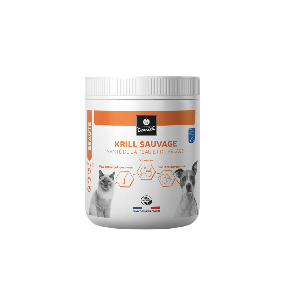 Pêchée en mer, le krill est une micro-crevette reconnue pour ses propriétés variées sur le bien-être animal. En effet, cet aliment contient des phospholipides, des oméga 3, mais aussi de l’astaxanthine un antioxydants, et de la choline qui contribue à la santé cardiovasculaire des chats, des chiens ou des furets. Afin de vous assurer un aliment complémentaire de qualité et contribuer à une démarche responsable, le krill utilisé est pêché selon les normes de la certification MSC. Une traçabilité rigoureuse et une pêche durable qui vous permettent de prendre soin de votre animal en toute confiance.