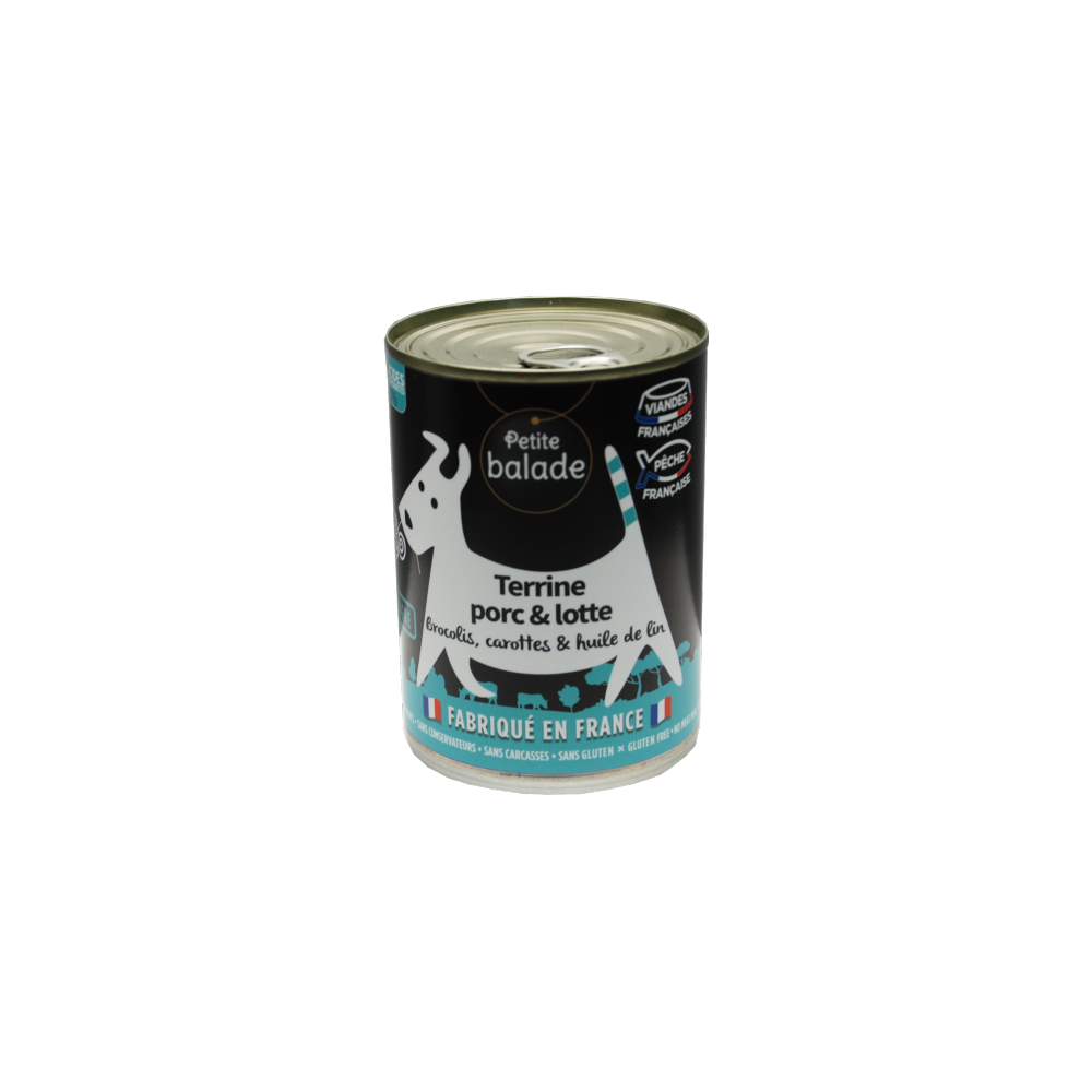 La présence de céréales et, par conséquent, de gluten dans certaines recettes de croquettes pour chien ne convient pas toujours à votre fidèle compagnon. Si ce dernier souffre de sensibilité digestive et présente régulièrement des désordres au niveau de son transit intestinal, une alimentation sans céréales pourra lui apporter à nouveau un confort véritable. La recette hautement digestible de cette terrine de porc et de lotteest aussi adaptée aux plus jeunes de vos compagnons. Une fois sevré, votre chiot pourra ainsi profiter d’un véritable éveil des papilles gustatives avec des saveurs qui rendent hommage à la Bretagne. Qu’il s’agisse de faciliter la digestion de votre animal, de contribuer à sa bonne croissance, ou de le récompenser avec une terrine saine, cette pâtée sans céréales Petite Balade saura satisfaire les attentes de votre chien et vos exigences en tant que maître.